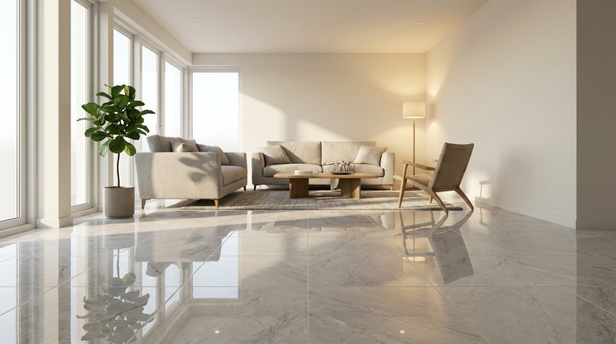 Trong khu vực khô như phòng khách, gạch bóng FTILES vẫn an toàn. Khu vực ẩm ướt nên dùng gạch outdoor chống trượt.