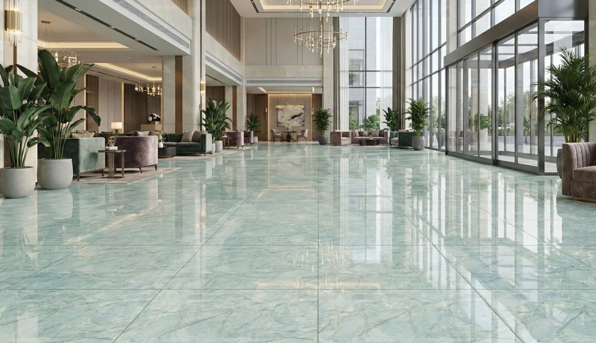 FTILES cung cấp các dòng gạch khổ lớn với hiệu ứng bóng kính cao cấp, mang lại không gian liền mạch và sang trọng. Kích thước lớn giúp giảm thiểu tối đa số lượng mạch, tạo cảm giác rộng và đẳng cấp hơn. Bề mặt gạch được xử lý để chống trầy xước và duy trì độ bóng ổn định trong thời gian dài, phù hợp với môi trường có mật độ di chuyển liên tục. Độ chuẩn màu cao giữa các viên gạch là một lợi thế lớn, đảm bảo tổng thể sảnh đẹp và đồng nhất khi nhìn từ xa. Kết quả là một không gian đậm dấu ấn cao cấp, phù hợp khách sạn, resort, trung tâm thương mại hoặc các công trình sang trọng.