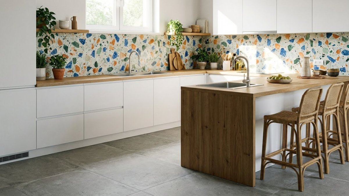 Gạch Terrazzo (Đá mài): Sự trở lại mạnh mẽ với diện mạo hiện đại, màu sắc phong phú hơn.