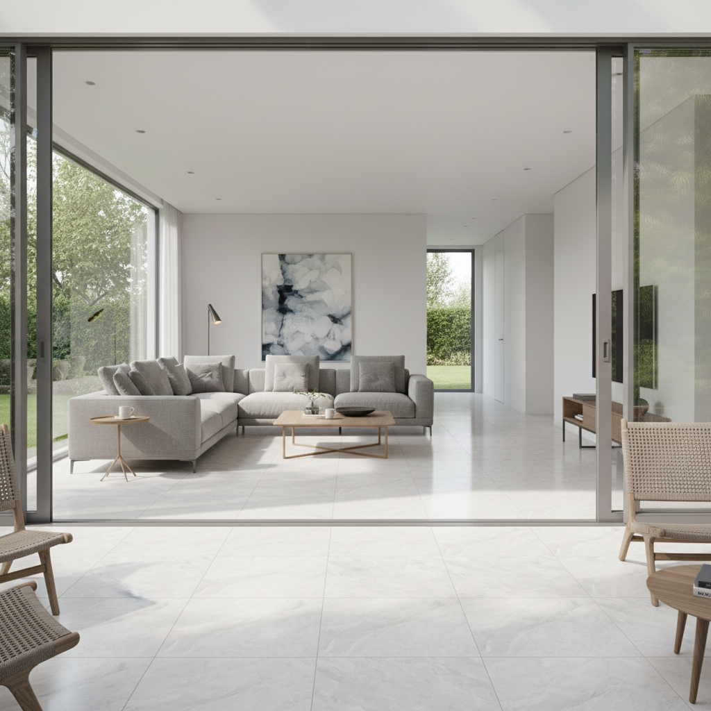 Tông xám marble bóng kính tạo cảm giác thanh lịch – thoáng rộng – bền vững, dễ dàng kết hợp với nhiều loại nội thất và décor.
