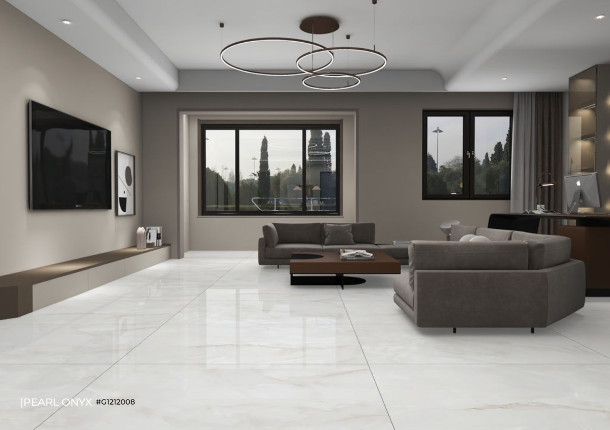 PEARL ONYX – G1212008 thuộc bộ sưu tập 1200x1200mm Glossy PGVT cao cấp của FTILES. Đây là mẫu gạch khổ lớn mang gam trắng ngọc trai sang trọng, kết hợp vân đá onyx mềm mại, bề mặt bóng kính cao cấp, tạo nên không gian tinh tế – thanh lịch – đẳng cấp.