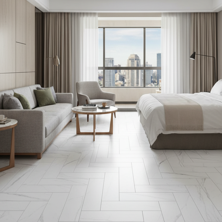 Minimalist Contemporary: décor tối giản, nhấn mạnh sự sang trọng của vân đá Armani.