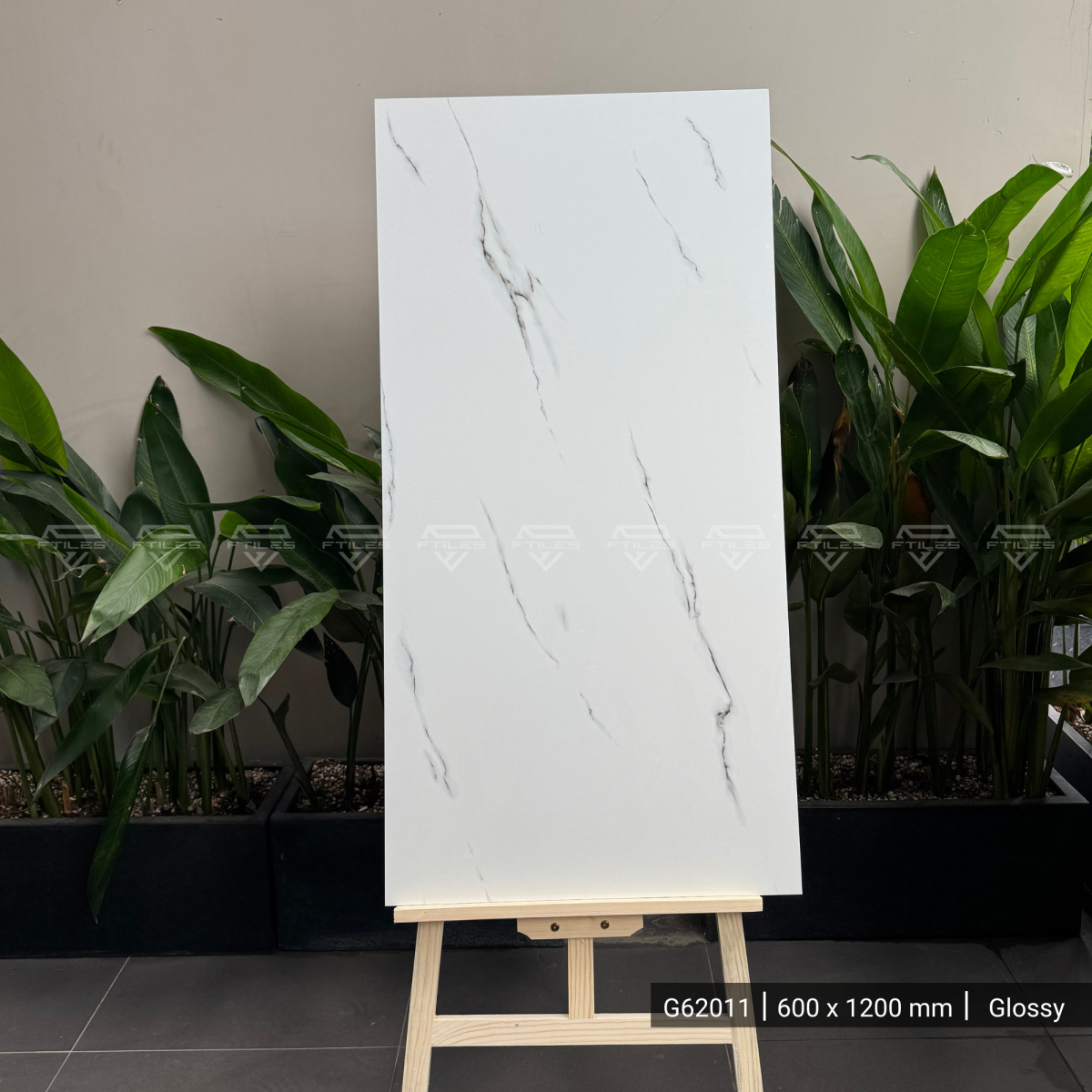MANGUS WHITE – G62011 thuộc bộ sưu tập Glossy PGVT cao cấp của FTILES, kích thước 600x1200mm. Mẫu gạch nổi bật với gam trắng sáng tinh khôi, vân đá nhẹ nhàng, bề mặt bóng kính sang trọng, mang lại cảm giác thanh thoát và mở rộng không gian.