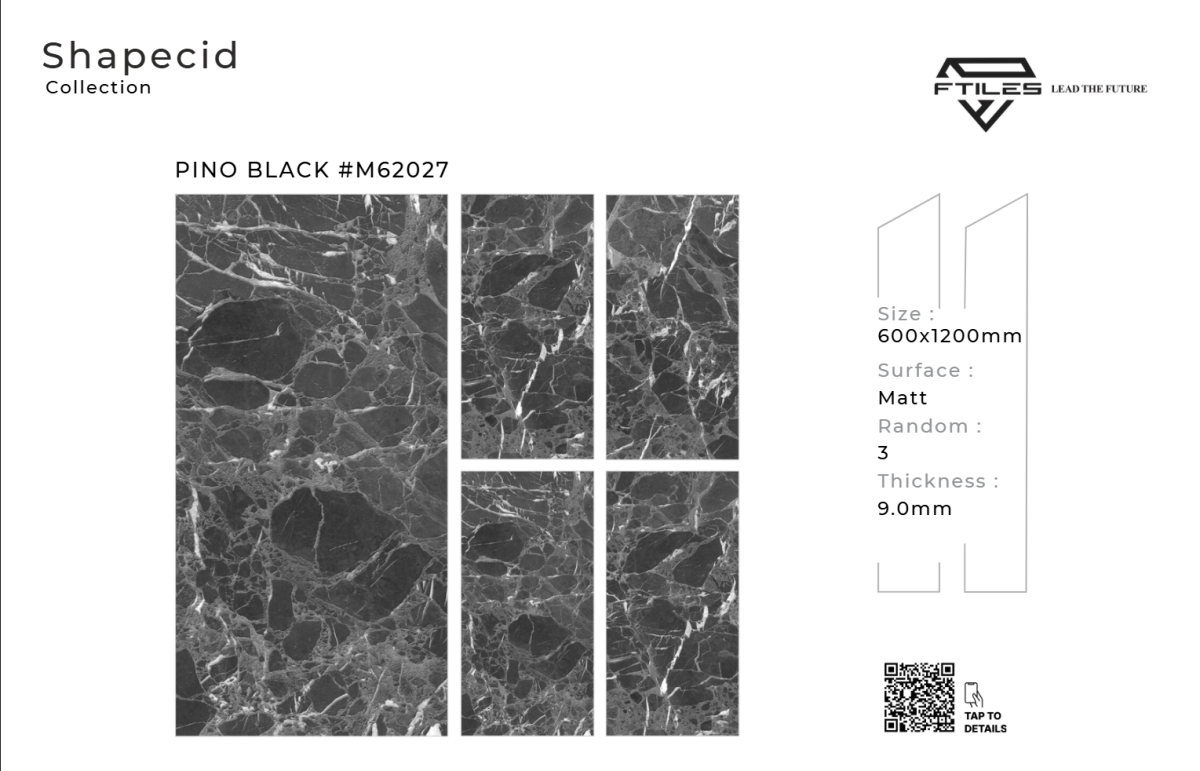 PINO BLACK – M62027 không chỉ là gạch lát/ốp, mà còn là giải pháp kiến tạo không gian sang trọng & hiện đại. Với gam đen granite huyền bí, vân đá tự nhiên mạnh mẽ, bề mặt Matt chống trơn và độ bền vượt trội, sản phẩm mang lại sự cân bằng hoàn hảo giữa thẩm mỹ – công năng – an toàn, lý tưởng cho công trình dân dụng và thương mại cao cấp.