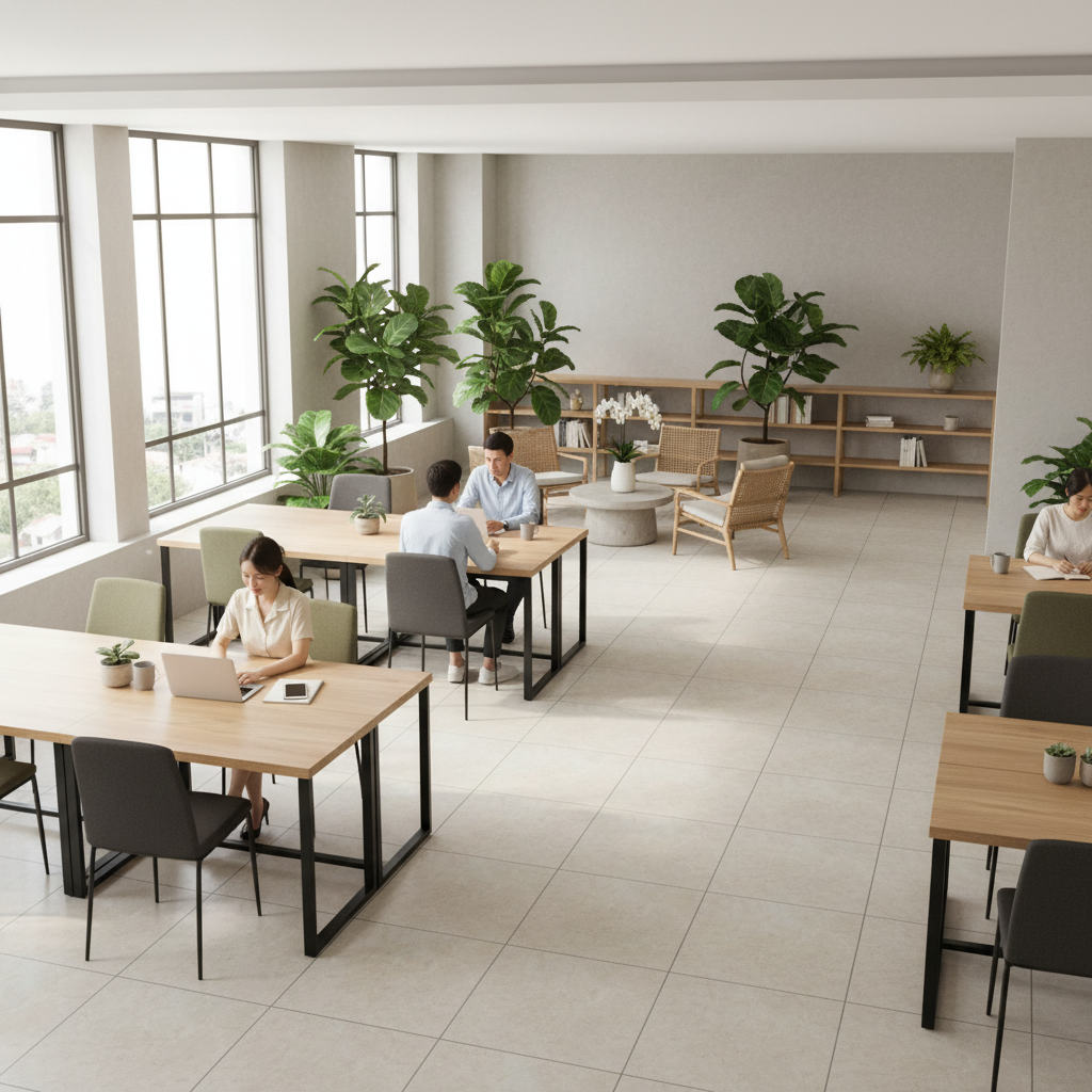 Không gian thương mại – dịch vụ: showroom, quán café, văn phòng, thư viện.