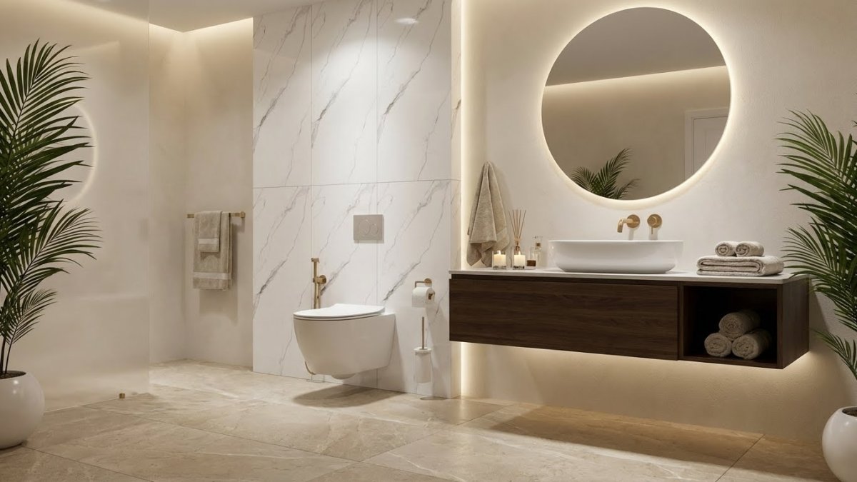 Nhà vệ sinh là khu vực có thủy khí mạnh, dễ tích ẩm. Nếu bề mặt và vật liệu không phù hợp sẽ làm giảm cảm giác sạch sẽ, thông thoáng — từ đó ảnh hưởng đến năng lượng tổng thể của căn nhà. Phong thủy hiện đại tập trung vào ánh sáng, độ an toàn và thông thoáng thay vì những kiêng kỵ quá cổ.