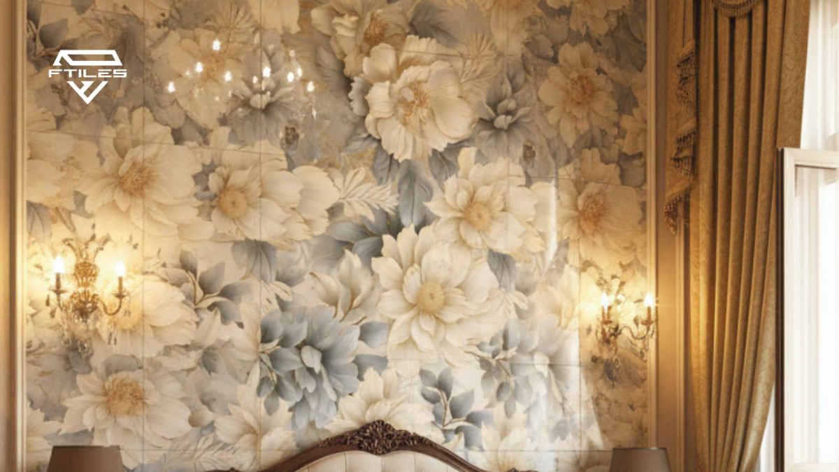 Gạch họa tiết bông cổ điển: Phong cách tân cổ điển, kết hợp với ánh sáng ấm cúng hoặc ánh sáng tự nhiên.