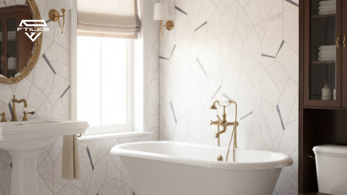 - Khả năng chống thấm & bền đẹp Gạch porcelain / ceramic từ FTILES dễ bảo trì, chịu ẩm tốt, thích hợp cho môi trường nhà tắm.