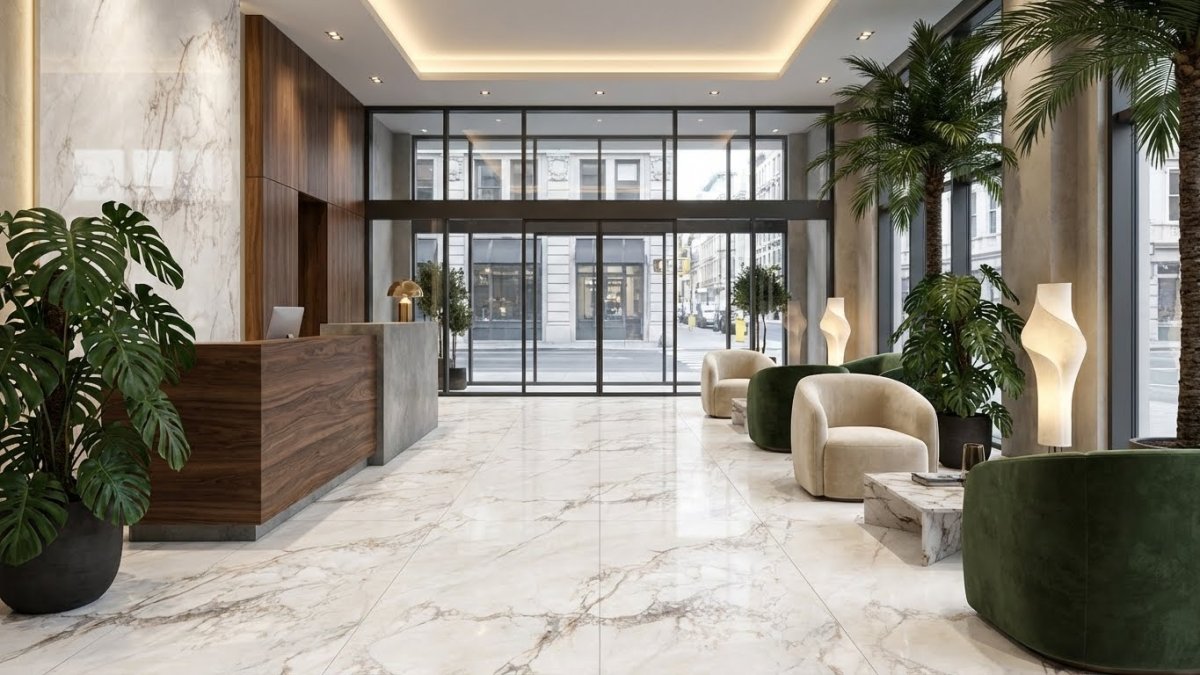 Rất phù hợp nhờ hiệu ứng sang – phản sáng, đặc biệt cho sảnh đón và khu vực trưng bày.