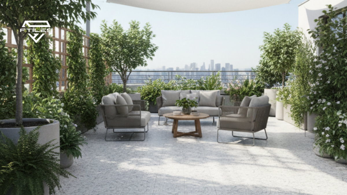 Gạch terrazzo Ftiles lát sân thượng ngoài trời.