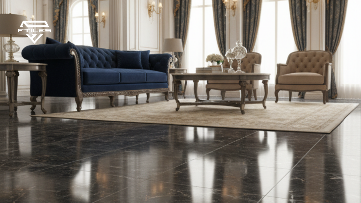 Sử dụng VERSACE BLACK #S62009 cho phòng khách giúp tăng sự sang trọng, đặc biệt khi kết hợp cùng nội thất kim loại, kính hoặc gỗ sáng màu.