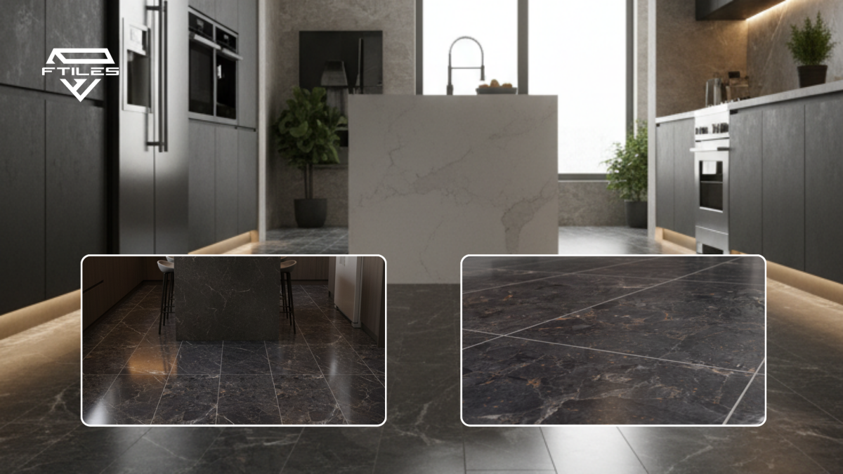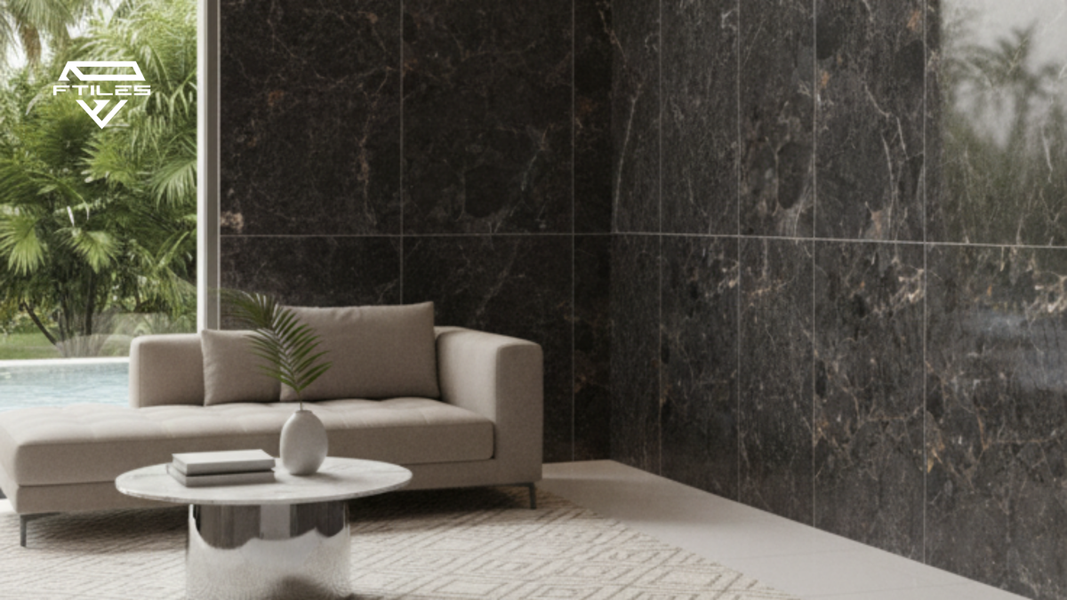 Gạch VERSACE BLACK #S62009 600x1200mm mang vẻ đẹp đẳng cấp, phù hợp mọi không gian sống. Khám phá mẫu gạch đen cao cấp, thiết kế tinh xảo từ FTILES.