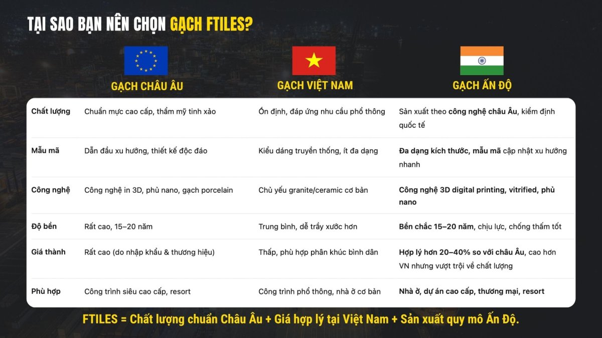 Gạch nhập khẩu Ấn Độ ngày càng phổ biến trong các dự án. Tìm hiểu vì sao chủ đầu tư lựa chọn gạch FTILES cao cấp, bền đẹp, sang trọng.