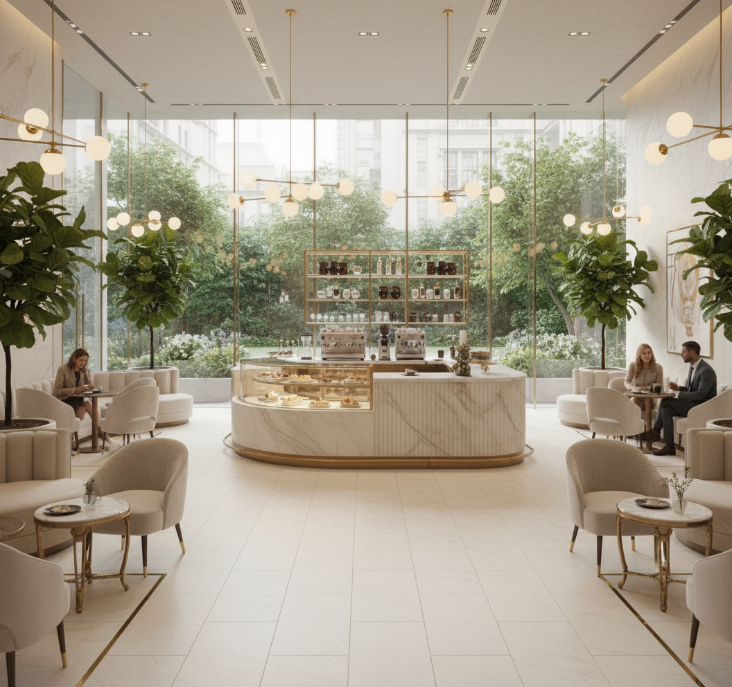 Không gian thương mại: showroom, văn phòng, quán café, nhà hàng.